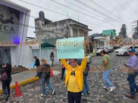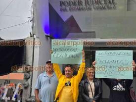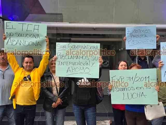 Xalapa, Ver., 21 de abril de 2026.- Extrabajadores del Ayuntamiento de Alto Lucero despedidos en 2011 se manifestaron a las afueras del Tribunal de Conciliación y Arbitraje para recriminar que desde hace 15 años no logran justicia en su caso de laudos laborales.