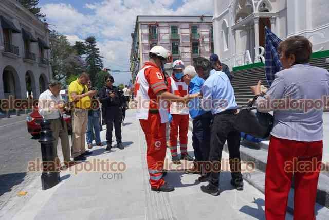 Xalapa, Ver., 23 de abril de 2026.- Adulto mayor fue atendido por paramédicos de la Cruz Roja luego de que resbalara en escalón de plaza Lerdo.