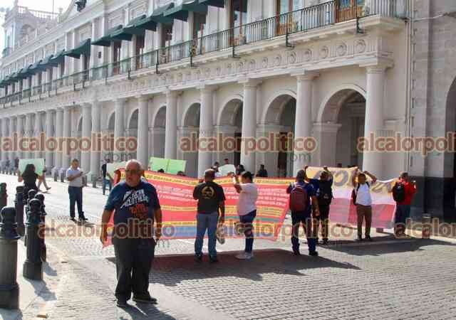 Xalapa, Ver., 28 de abril de 2026.- Familiares y exagentes de la extinta Policía Intermunicipal Poza Rica-Tihuatlán-Coatzintla bloquearon por varios minutos la calle Enríquez, en el centro de la Capital, para exigir al Gobierno del Estado el cumplimiento de pago pendientes.