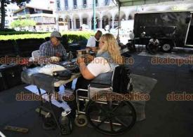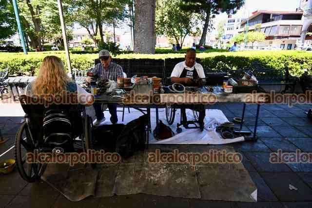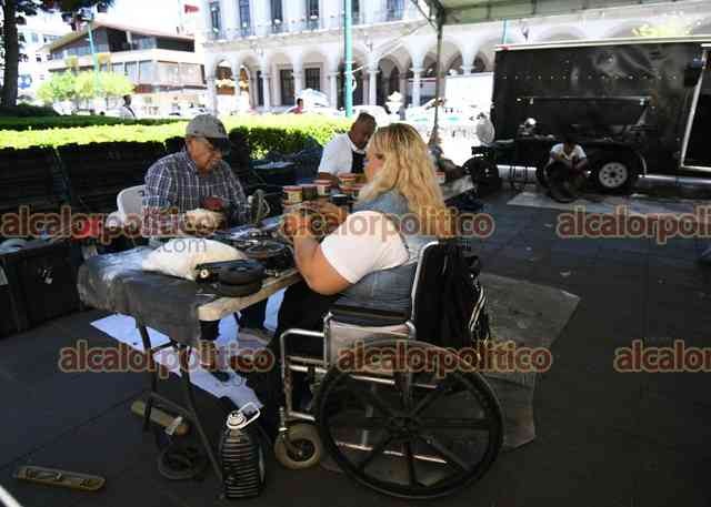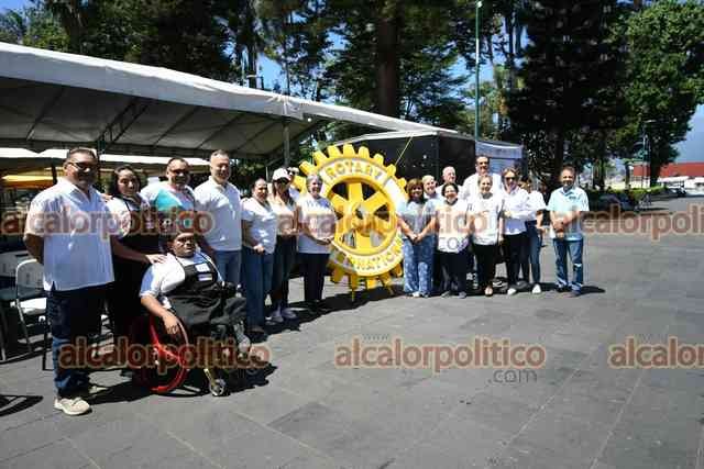 Xalapa, Ver., 28 de abril de 2026.- En el parque Juárez, el Club Rotario realiza jornada “Enchúlame la silla” para reparar hasta 90 sillas de ruedas.