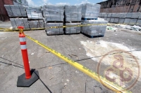 cintas de restricción para prohibir el paso, pero se olvida de acciones para evitar vuele con el viento el producto de los bultos rotos.