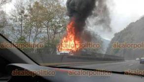 Por causas hasta el momento desconocidas, un tractocamión ardió en llamas la mañana de este domingo, cuando circulaba sobre la autopista 150D, del tramo carretero Orizaba-Nogales.