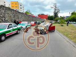 De acuerdo con los primeros reportes, el conductor del vehículo rojo perdió el control al tomar una curva, lo que provocó que se estrellara inicialmente contra un taxi con número económico XL-10691. Tras el primer impacto, la unidad también colisionó contra otro automóvil de alquiler marcado con el número XL-8283, para finalmente quedar con las llantas hacia arriba en plena vialidad.