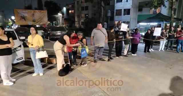 Xalapa, Ver., 4 de julio de 2025.- Vecinos del fraccionamiento Jardines de Xalapa bloquean la calle para exigir que les sea reestablecido el servicio de agua potable, el cual carecen desde el martes a causa una obra que se encuentra en la zona.