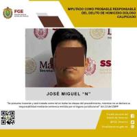 Se trata de José Miguel “N”, quien está tras las rejas como probable responsable del delito de homicidio doloso calificado cometido en agravio de 4 hombres.