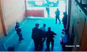 En las cámaras de seguridad del sitio se aprecia cómo el transportista llega al estacionamiento a bordo de una camioneta blanca y detrás de él patrullas de la Fuerza Civil, de donde descienden varios policías que ingresan sin permiso al lugar y finalmente se lo llevan detenido.