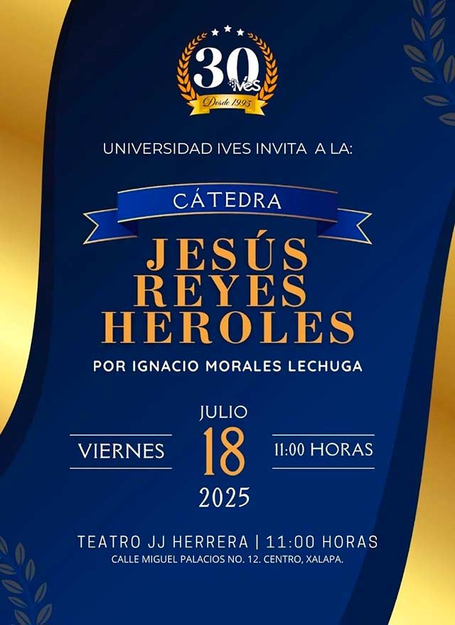 Universidad IVES invita a la Cátedra Jesús Reyes Heroles, este viernes 18 de julio.