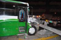 Javier Arenas Lázaro, tripulaba el urbano, marca International, modelo atrasado, color verde con blanco, sobre el carril Veracruz a Boca del Río, pero en la curva intentó rebasar a un motociclista, por lo que dio un volantazo y subió a la banqueta, frente al estacionamiento de una empresa de tractocamiones.