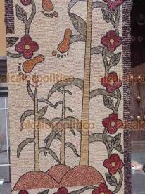 Mencionaron que en la elaboración de las diversas figuras usaron semillas de calabaza, maíz, frijol negro, bayo y ayocote, colorines y habas, lo que les permitió dar las diferentes tonalidades que requerían para elaborar las imágenes de San Miguel, San Gabriel y San Rafael, del símbolo de la Diócesis y otros elementos, como el ino, pan, pescado y un sahumerio que se hicieron para adornarlos.