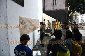 Activistas en pro del medio ambiente realizaron un mural móvil en el centro de la ciudad, con motivo de visualizar el manantial del Tecuanapan.