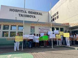 En el Hospital de Tarimoya, en Veracruz, empleados también se manifestaron en demanda de sus bonos navideños. Señalan que solo al 10 por ciento del personal se le ha pagado lo correspondiente a los vales que les fueron depositados en una tarjeta para canje en una tienda.