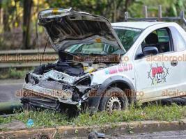 De acuerdo con los primeros reportes, la camioneta circulaba con dirección de Xalapa hacia Coatepec cuando, al tomar la curva, su conductor se desvió, impactó una luminaria ubicada en el camellón central y terminó invadiendo el carril contrario, donde colisionó con un autobús que se dirigía hacia Xalapa.