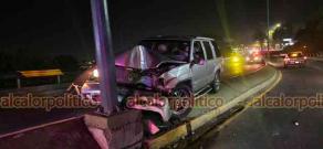 La noche de este viernes en el puente Macuiltépetl con dirección hacia Banderilla, un conductor presuntamente ebrio chocó con su camioneta contra una lumninaria.