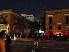El zócalo y la Catedral de Veracruz, también están afectados por la falta de energía eléctrica, por lo cual los paseantes y comerciantes deben usar sus teléfonos celulares para iluminar la zona.