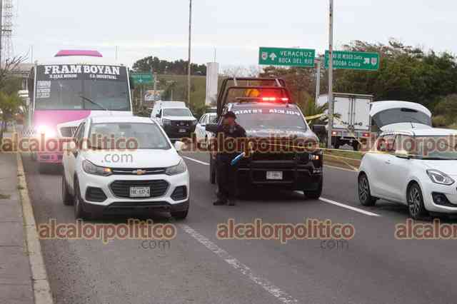 Taxi se impacta contra una roca en la carretera Misantla-Xalapa; no hubo heridos