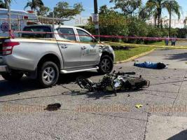Esta tarde de sábado, dos jóvenes en motocicleta se estrellaron contra la camioneta de una empresa privada y uno de ellos perdió la vida. El hecho fue en calles del fraccionamiento Puente Moreno en Medellín de Bravo, la zona fue acordonada por elementos policiacos en espera de personal ministerial.
