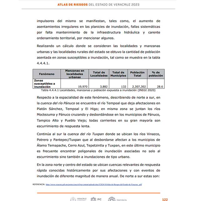 Como ejemplo de esta falta de especificidad tenemos que el “Protocolo de actuación ante eventos meteorológicos e hidrometeorológicos en espacios universitarios” que forma parte del SUGIR, en su Anexo 8 se hace mención de “Localidades urbanas susceptibles a inundación”, al ir al enlace, uno esperaría encontrar mapas de esas localidades, donde se visualizara los campus universitarios respectivos, pero no, en vez de ello, el enlace lleva a otro enlace y éste abre la página 122 del Atlas de Riesgos del Estado del año 2023, donde al final de ella aparece otro enlace que lleva al Atlas completo de 348 páginas.