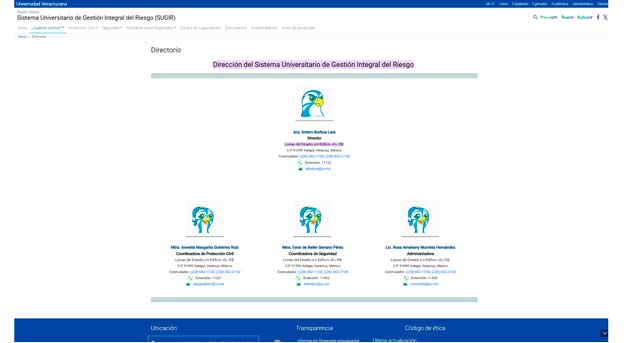 La Universidad Veracruzana no sólo son las instalaciones ubicadas en Lomas del estadio de aquí de Xalapa, la Universidad son muchas instalaciones distribuidas por toda la entidad y para cada una de ellas deben existir protocolos de actuación ESPECÍFICOS; e incluso de acuerdo al Artículo 62 de la Ley de Protección Civil y la Reducción del Riesgo de Desastres para el Estado de Veracruz de Ignacio de la Llave, cada instalación educativa debe contar con su Unidad Interna de Protección Civil, así como su Programa Interno en la materia. De ello surgirían algunas preguntas que el SUGIR no responde, tales como: ¿Cuáles son los riesgos a los que cada campus universitario está expuesto?, ¿Cuál es el mecanismo de comunicación efectiva (el Facebook no es un medio de comunicación inmediata), hacia los alumnos y personal para informar sobre eventuales contingencias?, ¿Cuáles son los sitios seguros a los que un alumno debe recurrir en caso de un siniestro?, ¿En los protocolos, cuál es el rol que juegan los jefes de grupo o consejeros alumnos, pues éstos son el primer contacto de comunicación que el alumnado tiene?