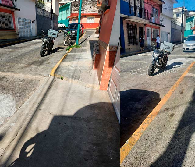 Xalapa, Ver., 9 de julio de 2025.- Automovilista pide a Tránsito solucionar casos de personas que deja su motocicleta ocupando mucho espacio en la calle cuando pueden acomodarse de manera que otros vehículos puedan estacionarse. Foto corresponde a calle Bremont y Mata, en el centro de la Capital.