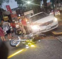 Motociclista resultó levemente lesionado al ser arrollado por un auto en la avenida Américas esquina con la calle Paricutín de la colonia José Cardel. Al parecer el motociclista circulaba sobre la avenida Américas en el carril que comunica a la avenida Xalapa.