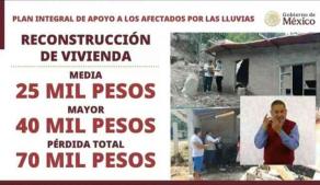 Como parte del Plan Integral de Apoyo a los Afectados por las Lluvias, las familias que sufrieron daños en sus viviendas también recibirán recursos adicionales para reconstrucción, de acuerdo con el nivel de afectación: 25 mil pesos por daño medio, 40 mil pesos por daño mayor, y 70 mil pesos en casos de pérdida total.