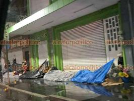 Y como cada año, en este 2025 de nueva cuenta la calle Poniente 7 entre Sur 8 y 10, se convierte en el sitio en donde tienden plásticos para poder dormir y se tapan con algunos rebozos y con bolsas plásticas