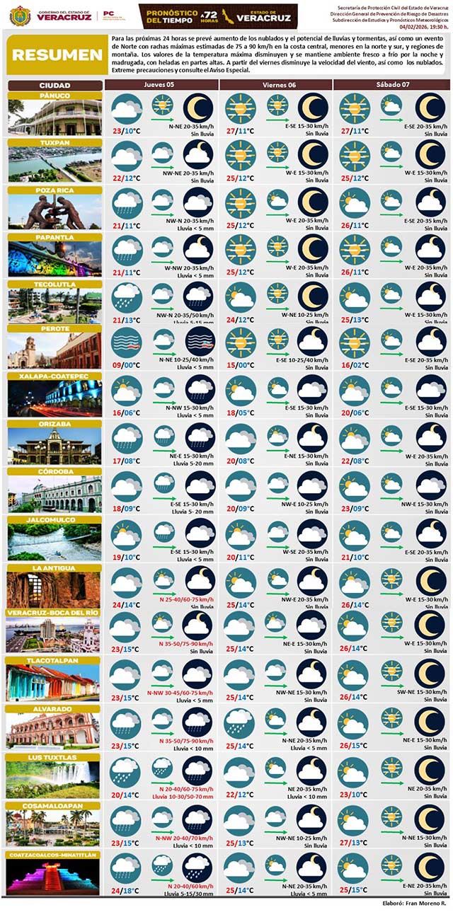 Este jueves llegaría otro Frente Frío a Veracruz: Protección Civil