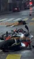 De acuerdo con los primeros reportes, el percance se registró cuando una motocicleta en la que viajaban dos personas impactó contra el taxi marcado con el número económico 103. De manera preliminar, se informó que presuntamente uno de los conductores no habría respetado la luz roja del semáforo, lo que habría provocado la colisión.