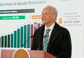 “La deuda financiera creció 129.5 por ciento durante el periodo neoliberal. Esa tendencia se ha revertido y como resultado del trabajo conjunto hay una disminución de más de 20 mil millones de dólares en el saldo de la deuda en comparación con 2018”, afirmó.