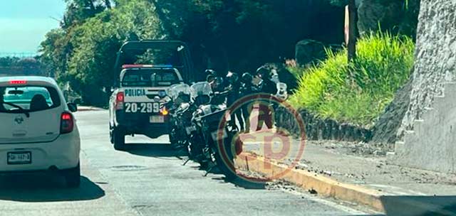 Xalapa, Ver., 28 de septiembre de 2023.- Tras la aparición del mensaje contra Rocío Nahle, quien aspira a la gubernatura, policías llegaron a retirar la lona colgada en el puente de la avenida Lázaro Cárdenas, por Agua Santa.