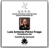 Este lunes trascendió el fallecimiento del presidente del Comité del Carnaval de Veracruz, Luis Antonio Pérez Fraga, a la edad de 62 años, a consecuencia de cáncer que padecía desde hace unos años.