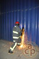 Los bomberos tiraron dos puertas metálicas con equipos de corte y con el apoyo de un montacargas incluso un muro de concreto para acceder y combatir el fuego con chorros de agua a presión.