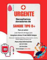 Se necesita cualquier tipo de sangre. ¿Cómo puedes ayudar? Si estás en condiciones de donar sangre, por favor, acude a la clínica 11 del IMSS Xalapa ubicada en la calle Nicolás Bravo, zona Centro de la ciudad de Xalapa-Enríquez, lo antes posible. Tu donación puede ser el regalo de vida que necesita nuestro familiar.