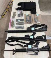 En el sitio, los agentes aseguraron un fusil AR-15 Colt, una carabina Colt calibre 5.56 milímetros, un fusil calibre 5.56 milímetros, un revólver Royal Patent calibre .38 Especial, una pistola Interarms calibre .45, 77 cartuchos útiles, 3 cargadores metálicos y un chaleco táctico.