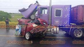 La tarde de este sábado, el conductor de un automóvil particular perdió la vida, luego de que chocó de frente contra un tráiler, en la carretera federal entre los municipios de Lerdo de Tejada y Alvarado.