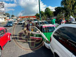 Paramédicos acudieron al sitio para brindar los primeros auxilios a una mujer que viajaba en un taxi, quien presentó algunas lesiones tras el impacto. Luego de ser valorada en el lugar, fue trasladada a un hospital.