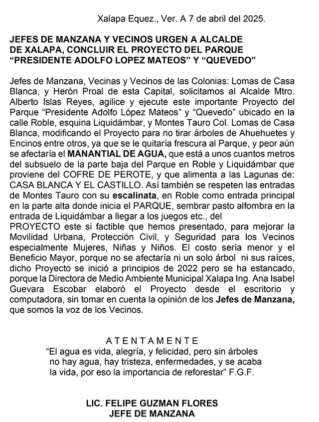 Urgen concluir proyecto de parque en colonia Lomas de Casa Blanca, en Xalapa