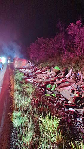 Volcadura de tráiler en autopista federal Cardel-Poza Rica