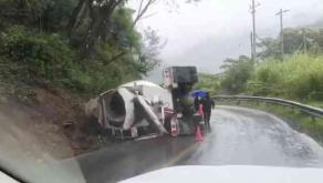 Volcó revolvedora de cemento en carretera Orizaba-Zongolica