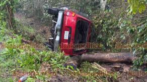 La tarde de este martes, una camioneta terminó volcada fuera del camino, de la carretera que conecta Coatepec-Tuzamapan, a la altura de la estación de gas, su conductora quedó atrapada en el interior y sin posibilidad de salir por sus propios medios, siendo rescatada por los Bomberos.