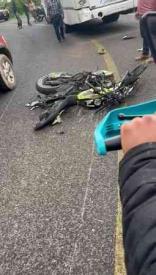 Jóvenes en moto chocaron con autobús, en Zongolica
