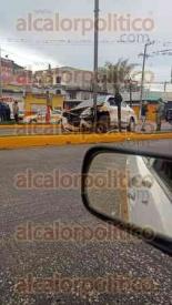 Taxi se sube a camellón y se impacta contra poste, en Córdoba