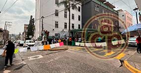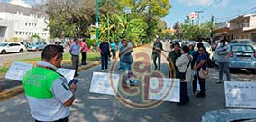 Xalapa, Ver., 19 de diciembre de 2025.- Trabajadores del Hospital Regional “Luis F. Nachón” bloquearon la calle Nicolás Bravo para exigir bonos en efectivo. |