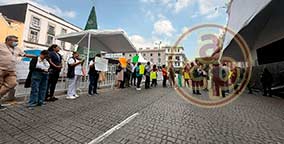 Xalapa, Ver., 19 de diciembre de 2025.- Trabajadores de la Secretaría de Salud amenazan con impedir el desfile navideño. Para reclamar sus bonos en efectivo, bloquearon la calle Enríquez el mediodía de este viernes. |