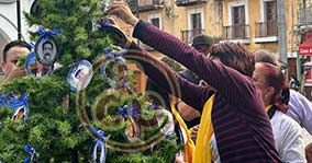 Veracruz, Ver., 20 de diciembre de 2026.- En la Plaza de la Soberanía familias colocaron en el “Árbol de la Ausencia” más de 60 esferas con fotos de desaparecidos, mientras que en el suelo extendieron lonas con las fichas de búsqueda. |