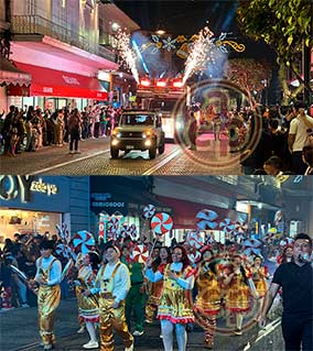 | Xalapa, Ver., 24 de noviembre de 2024.- Con 2,700 bailadoras y bailadores folklóricos, llegados de municipios de toda la geografía estatal y de otras entidades de la República, la Universidad Veracruzana cumplió este domingo con la Séptima Edición del Reto La Bamba en el corazón de la ciudad, conducido por el grupo Tlen Huicani del maestro Alberto de la Rosa. | |||||||||||