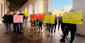 Xalapa, Ver., 19 de diciembre de 2025.- Trabajadores de la Secretaría de Salud se manifestaron frente a la dependencia, en demanda del pago en efectivo de sus bonos. |