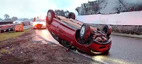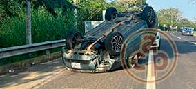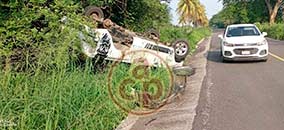 Camioneta vuelca tras salirse del camino en curva, en Emiliano Zapata - El chofer habría perdido el control por ir a gran velocidad, en la carretera Xalapa-Veracruz |