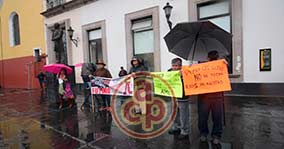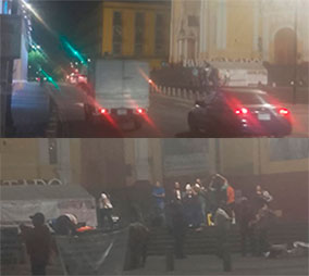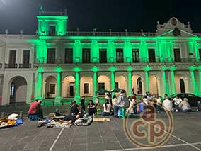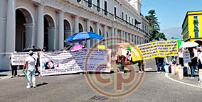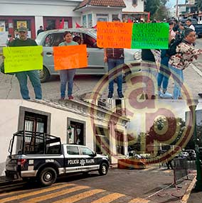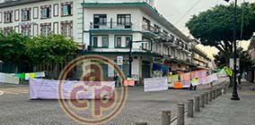 Coatepec, Ver., 23 de diciembre de 2025.- Vendedores ambulantes que fueron desalojados el lunes protestaron en la entrada y en el parque de este Pueblo Mágico. Mientras tanto el Palacio Municipal está cercado con vallas y resguardado por elementos de seguridad. |