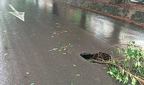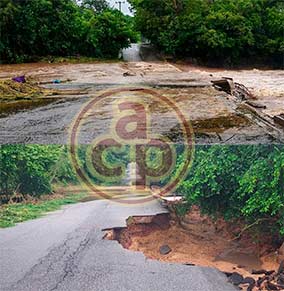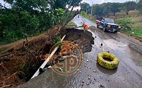 | En vez de construir el muro que daría solidez a la carretera, en el sinuoso y empinado tramo de Banderilla a Jilotepec, las autoridades optaron por señalizar el socavón, por donde transitan unidades pesadas, como tráileres y autobuses llenos de gente hacia Naolinco y la sierra de Misantla. Quizás esperan a que un derrumbe impida totalmente el paso. | |||||||||||